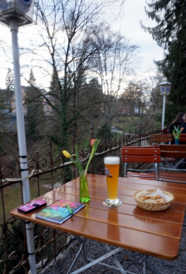 Am Dienstagnachmittag noch mal leichthin das Glück genossen, ein Spaziergang (allein), ein offener Biergarten, ein Tisch ganz für mich - Sicherheitsabstand satt gewahrt - das Bier alkoholfrei, der Moment zum Schwelgen schön.