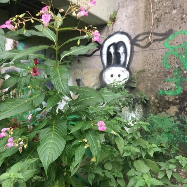 Bei uns im Ländle, am heimischen Neckar: indisches Springkraut und die heilige Kuh. Ooommh.