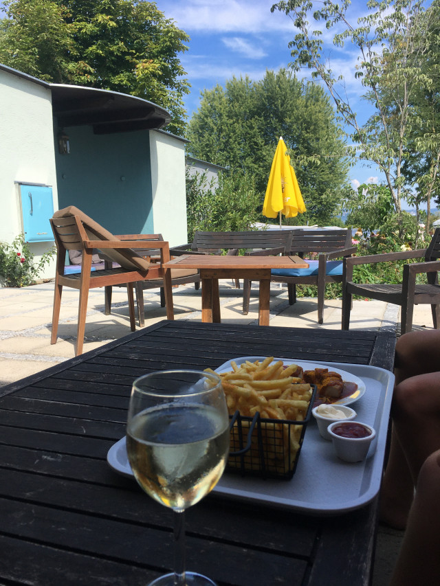 11. Urlaubstag. Das Mädel hat gerade sein Eis gegessen, die anderen sind unterwegs zum Kiosk. Das Mädel will nicht mit: sie will jetzt erstmal Freizeit. Okee. Ich persönlich habe ja das Gefühl, wir haben seit Tagen nichts anderes